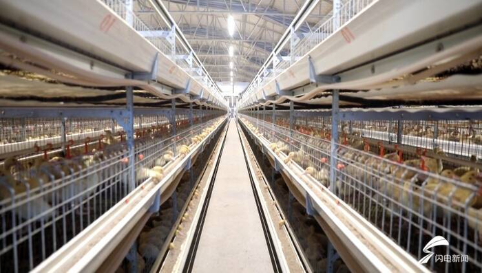 在潍坊市树芽肉鸡养殖场,智能化鸡舍具备自动饲喂与环境监控功能,确保空气、饮水、饲料洁净,大幅改善了肉鸡的生长环境,降低了抗菌药使用量。