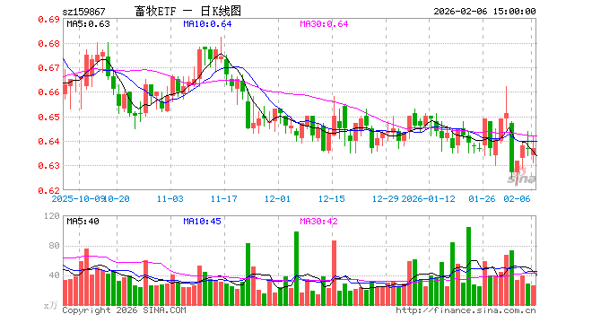 2月6日,畜牧ETF(159867)涨0.00%,成交额1690.88万元。当日份额减少750.00万份,最新份额为12.72亿份,近20个交易日份额增加0.00份。最新资产净值计算值为8.10亿元。